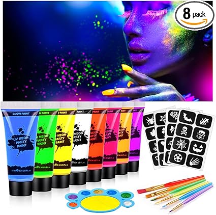 Maquillage fluorescent réactif à la lumière UV, pensé pour les festivals et soirées rave. Idéal pour créer des looks créatifs et visibles sous les éclairages nocturnes.